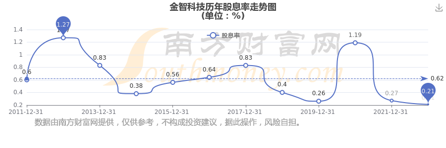 金智科技?xì)v年股息率走勢(shì)如下圖: