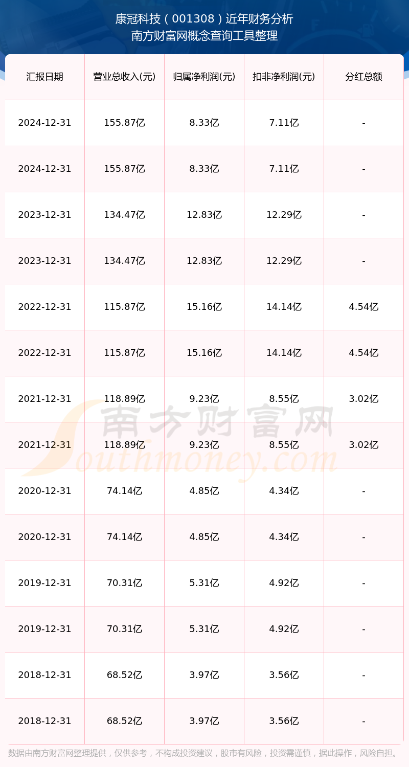 2024年報(bào)顯示,康冠科技實(shí)現(xiàn)營(yíng)收155.87億,同比增長(zhǎng)15.92%;凈利潤(rùn)8.33億,同比增長(zhǎng)-35.02%;毛利率12.77%。