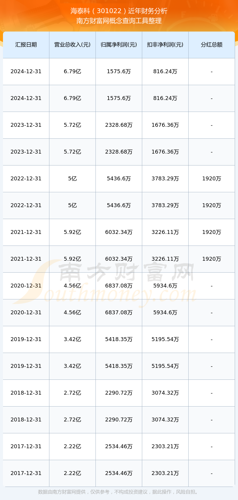 近年海泰科分紅派息情況如下表所示: