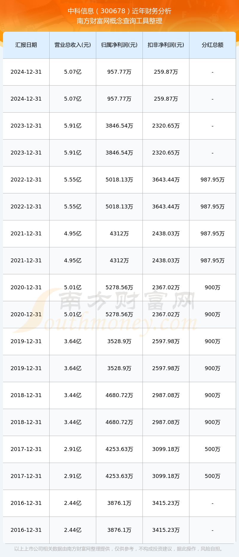近年中科信息分紅派息情況如下表所示: