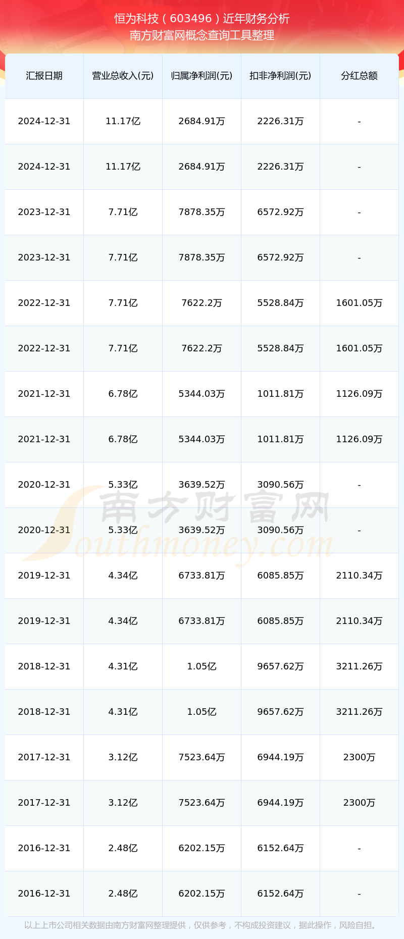 近年恒為科技分紅派息情況如下表所示: