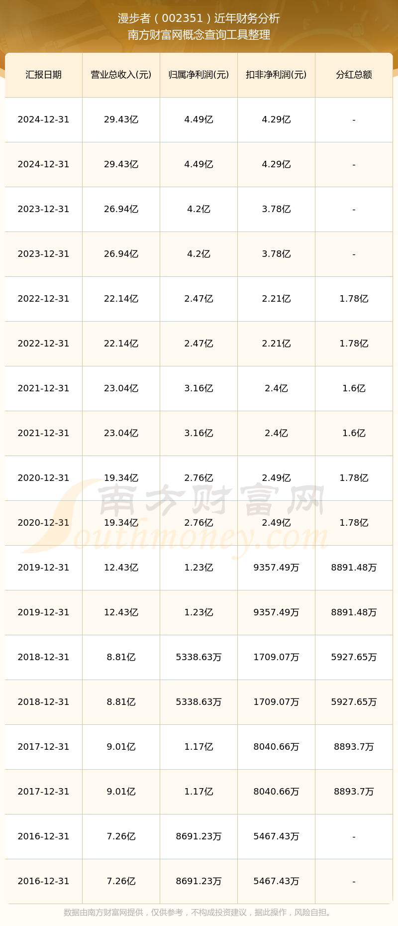 漫步者歷年分紅派息情況如下表所示: