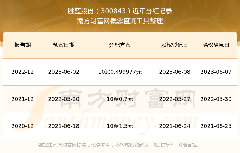 勝藍(lán)股份歷年分紅派息情況如下表所示:
