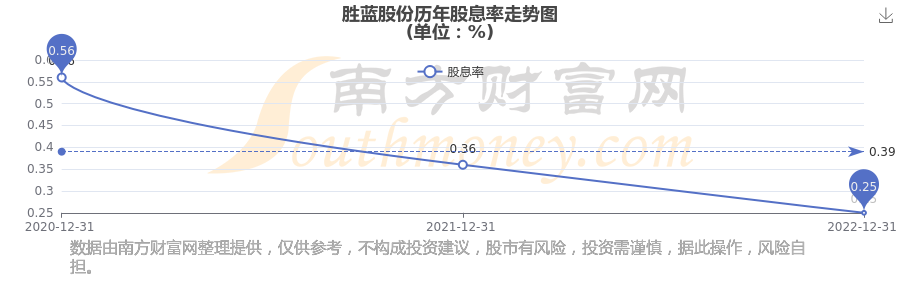 勝藍(lán)股份歷年股息率走勢(shì)如下圖: