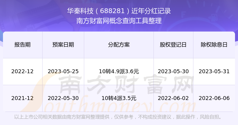 華秦科技?xì)v年分紅派息情況如下表所示: