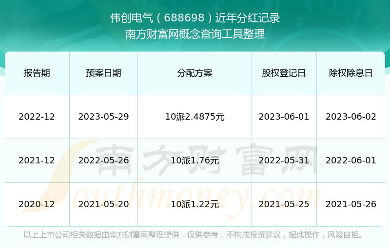 近年偉創(chuàng)電氣分紅派息情況如下表所示: