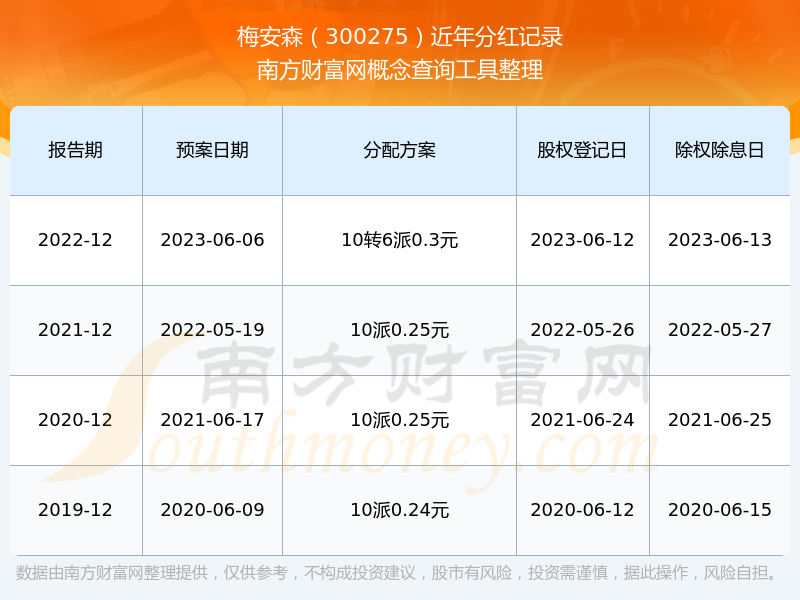 梅安森最新一次公布的分紅方案為10轉(zhuǎn)6派0.3元。本次權(quán)益分派股權(quán)登記日為2023年6月12日,除權(quán)除息日為2023年6月13日,派息日為2023年6月13日。