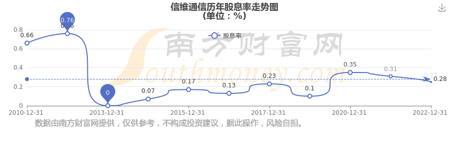 信維通信歷年股息率走勢如下圖: