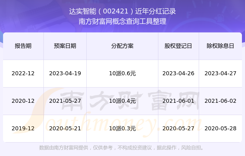 達實智能最新一次公布的分紅方案:10派0.6元。