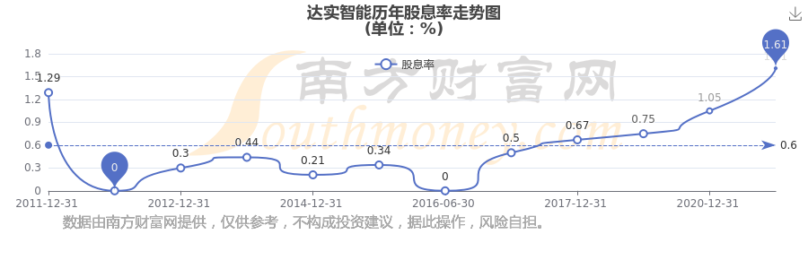 達實智能歷年股息率走勢如下圖: