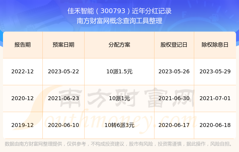 佳禾智能最新一次公布的分紅方案:10派1.5元。