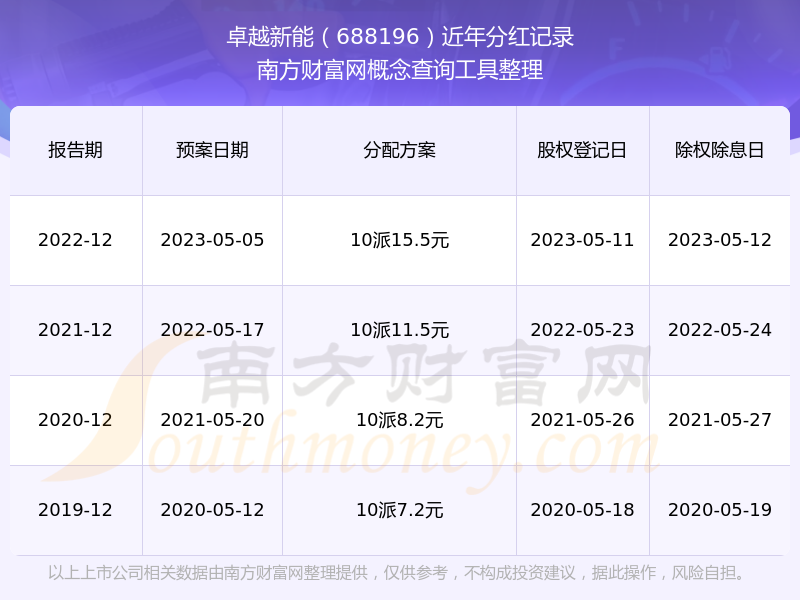 卓越新能最新一次公布的分紅方案:10派15.5元。