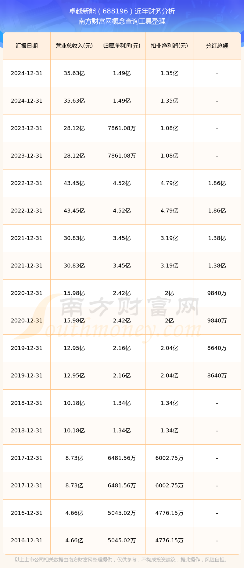 近年卓越新能分紅派息情況如下表所示:
