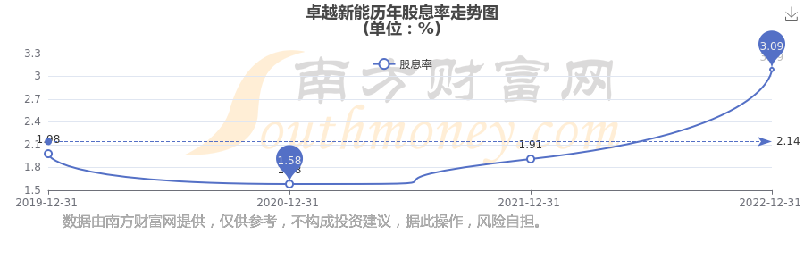 卓越新能歷年股息率走勢(shì)如下圖: