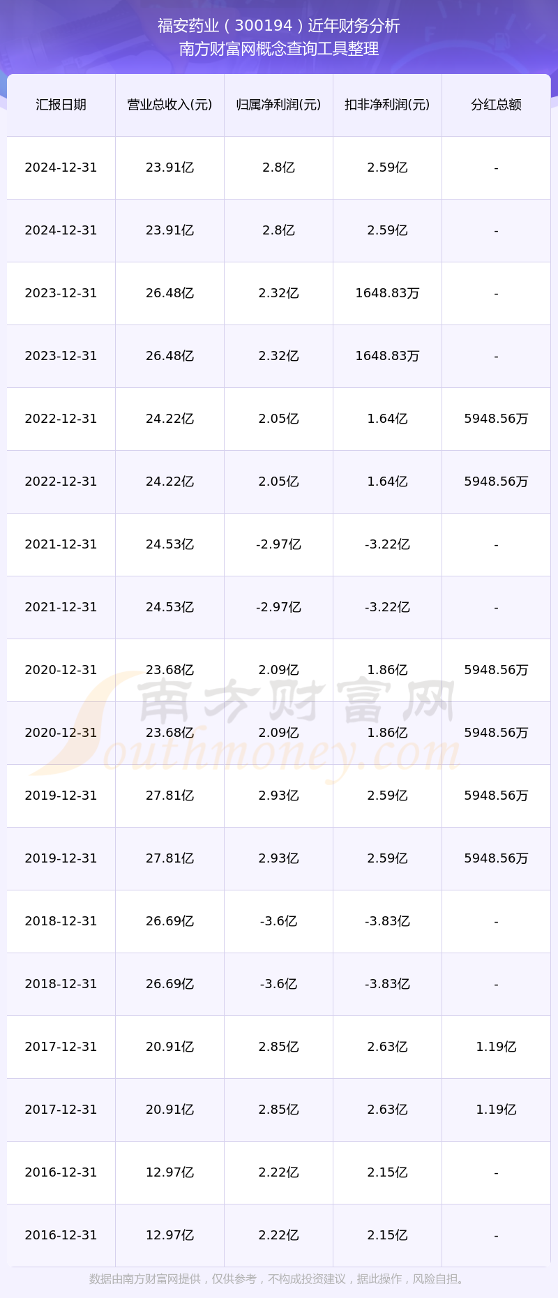 福安藥業(yè)公司2024年實(shí)現(xiàn)營收23.91億元,凈利潤2.8億元,毛利率52.96%。