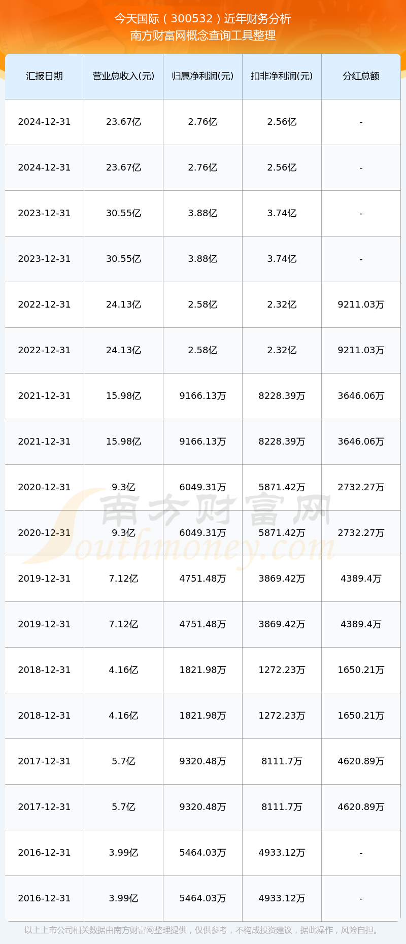 今天國際公司2024年實現(xiàn)營業(yè)收入23.67億元,同比增長-22.51%;凈利潤2.76億元,同比增長-28.8%;毛利率26.77%。