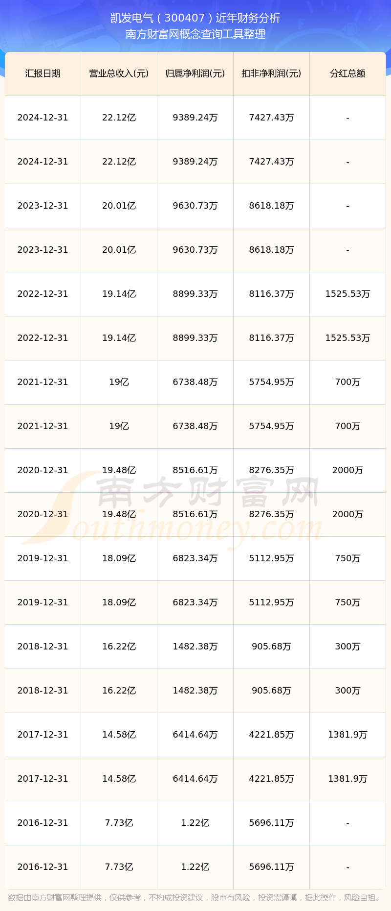 近年凱發(fā)電氣分紅派息情況如下表所示: