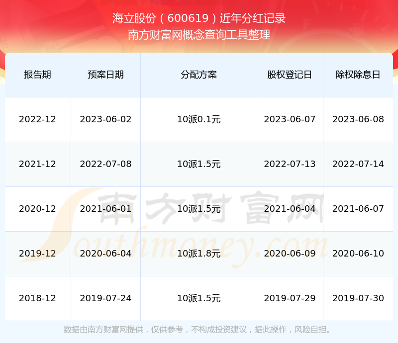海立股份最新一次公布的分紅方案為10派0.1元。本次權(quán)益分派股權(quán)登記日為2023年6月7日,除權(quán)除息日為2023年6月8日,派息日為2023年6月8日。