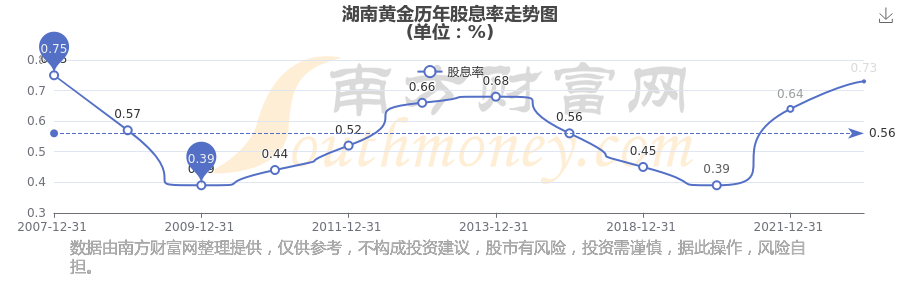 湖南黃金歷年股息率走勢(shì)如下圖: