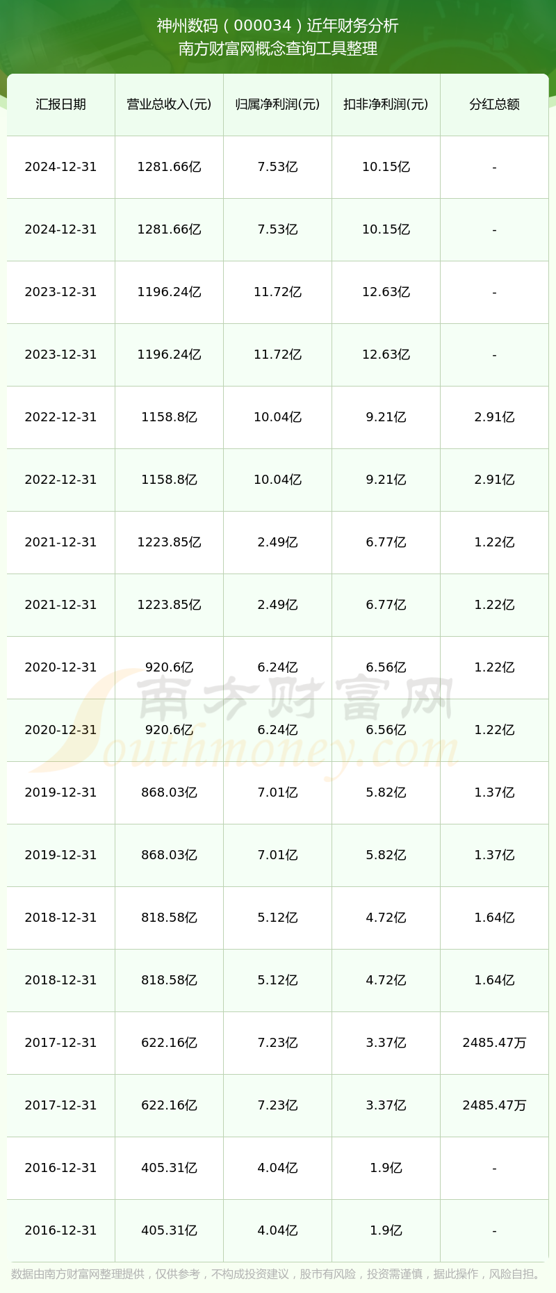 神州數(shù)碼歷年分紅派息情況如下表所示: