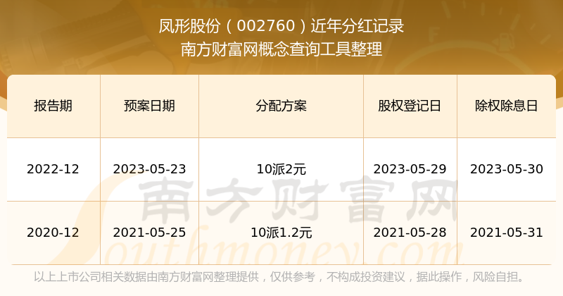 鳳形股份最新一次公布的分紅方案為10派2元。本次權(quán)益分派股權(quán)登記日為2023年5月29日,除權(quán)除息日為2023年5月30日,派息日為2023年5月30日。