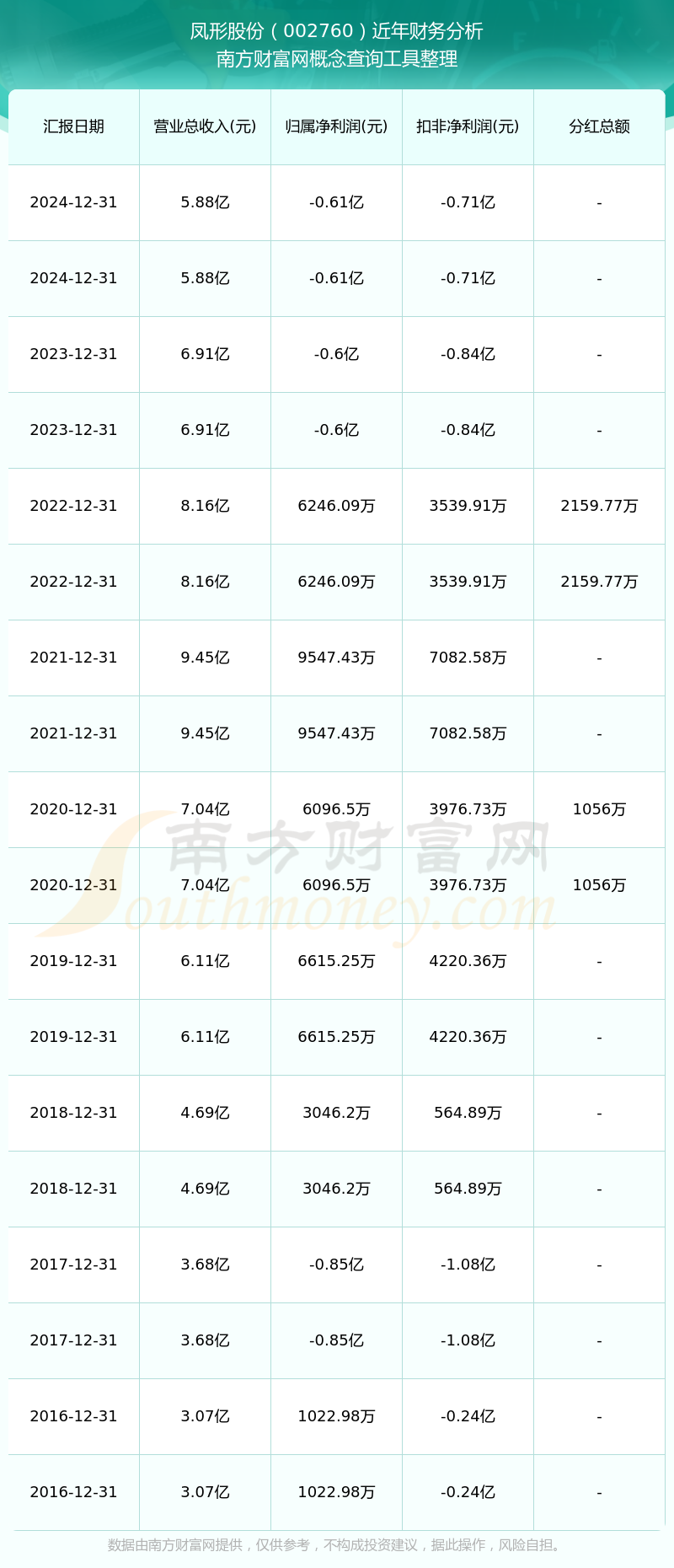 近年鳳形股份分紅派息情況如下表所示: