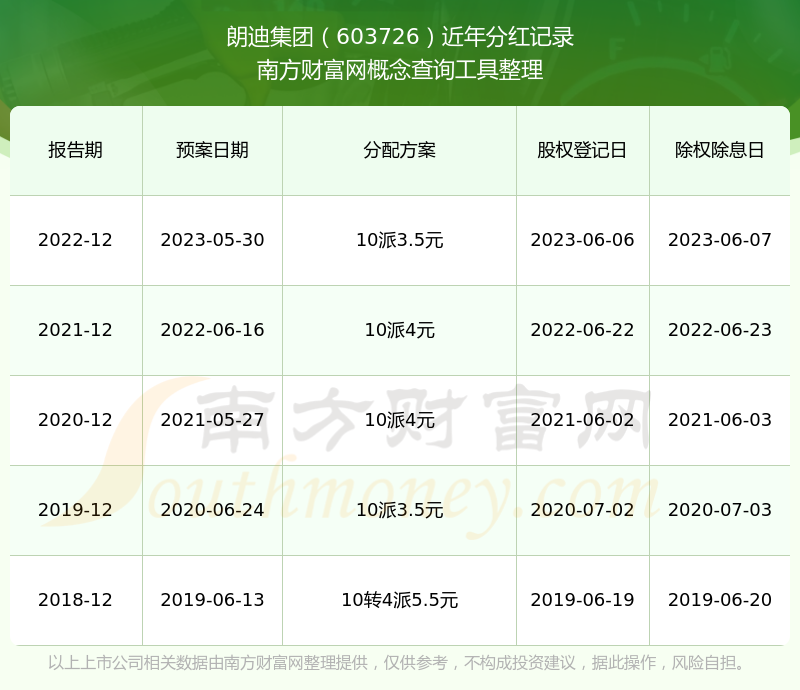 朗迪集團(tuán)最新一次公布的分紅方案:10派3.5元。