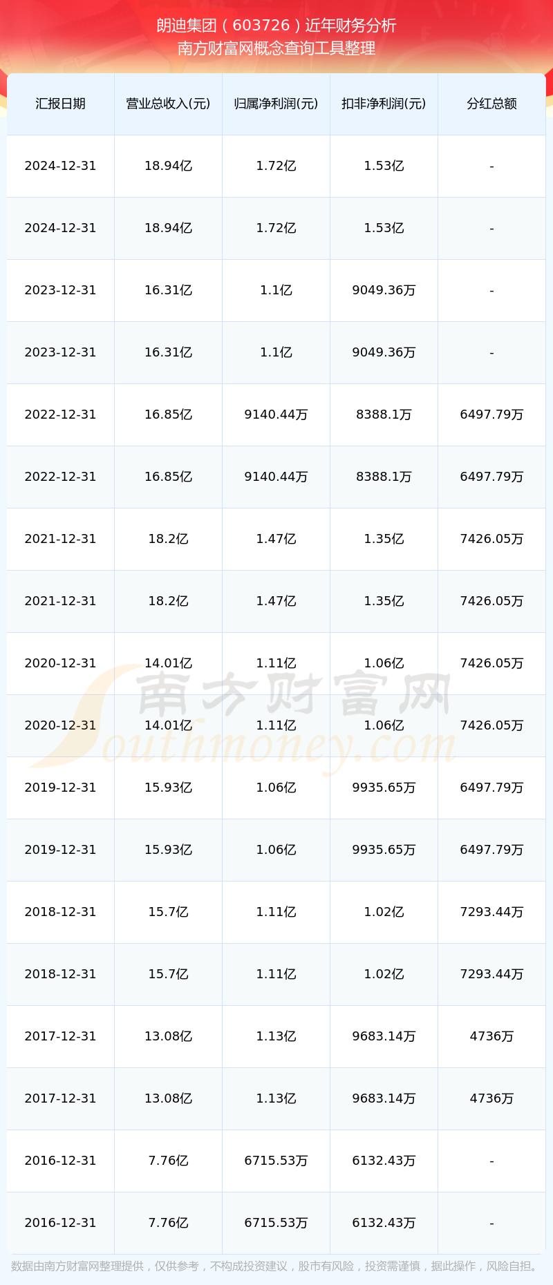 朗迪集團(tuán)歷年分紅派息情況如下表所示:
