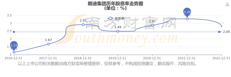 朗迪集團(tuán)歷年股息率走勢如下圖: