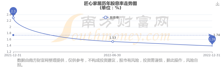 匠心家居最新一次公布的分紅方案為10派5元。本次權益分派股權登記日為2023年5月19日,除權除息日為2023年5月22日,派息日為2023年5月22日。