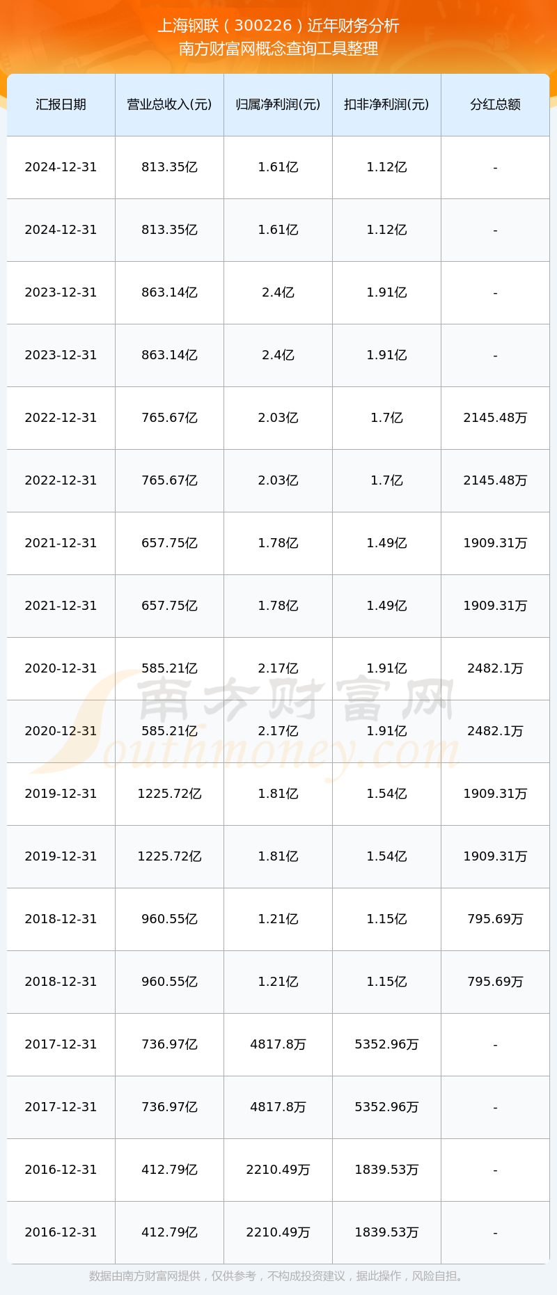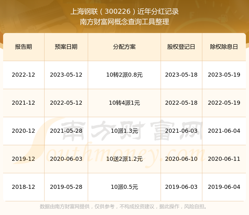近年上海鋼聯(lián)分紅派息情況如下表所示: