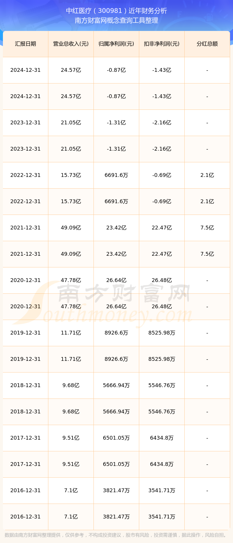 中紅醫(yī)療公司2024年實現(xiàn)營業(yè)收入24.57億元,同比增長16.69%;凈利潤-8712.89萬元,同比增長33.42%;毛利率13.37%。