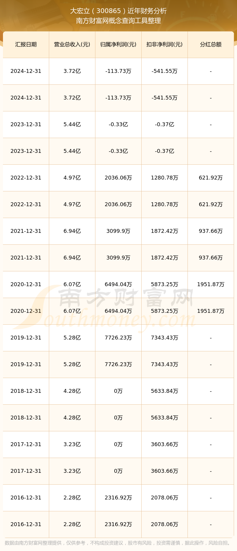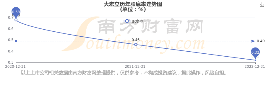 大宏立最新一次公布的分紅方案為10派0.65元。本次權(quán)益分派股權(quán)登記日為2023年6月6日,除權(quán)除息日為2023年6月7日,派息日為2023年6月7日。