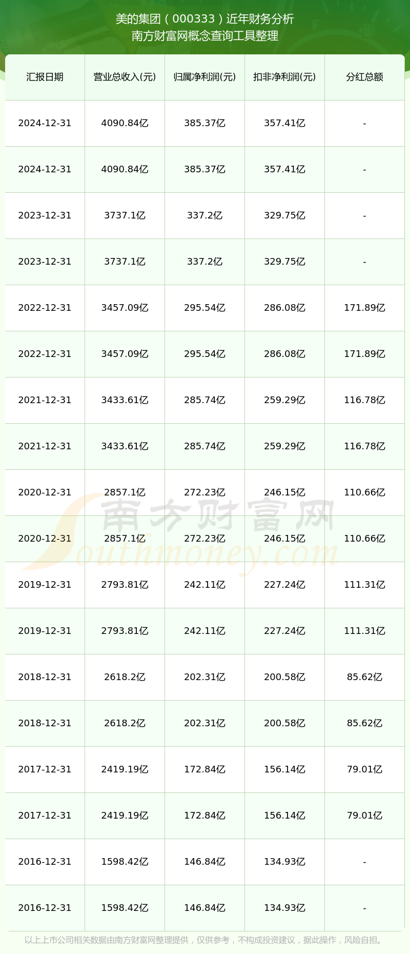 2024年報(bào)顯示,美的集團(tuán)實(shí)現(xiàn)營(yíng)收4090.84億,同比增長(zhǎng)9.47%;凈利潤(rùn)385.37億,同比增長(zhǎng)14.29%;毛利率26.42%。