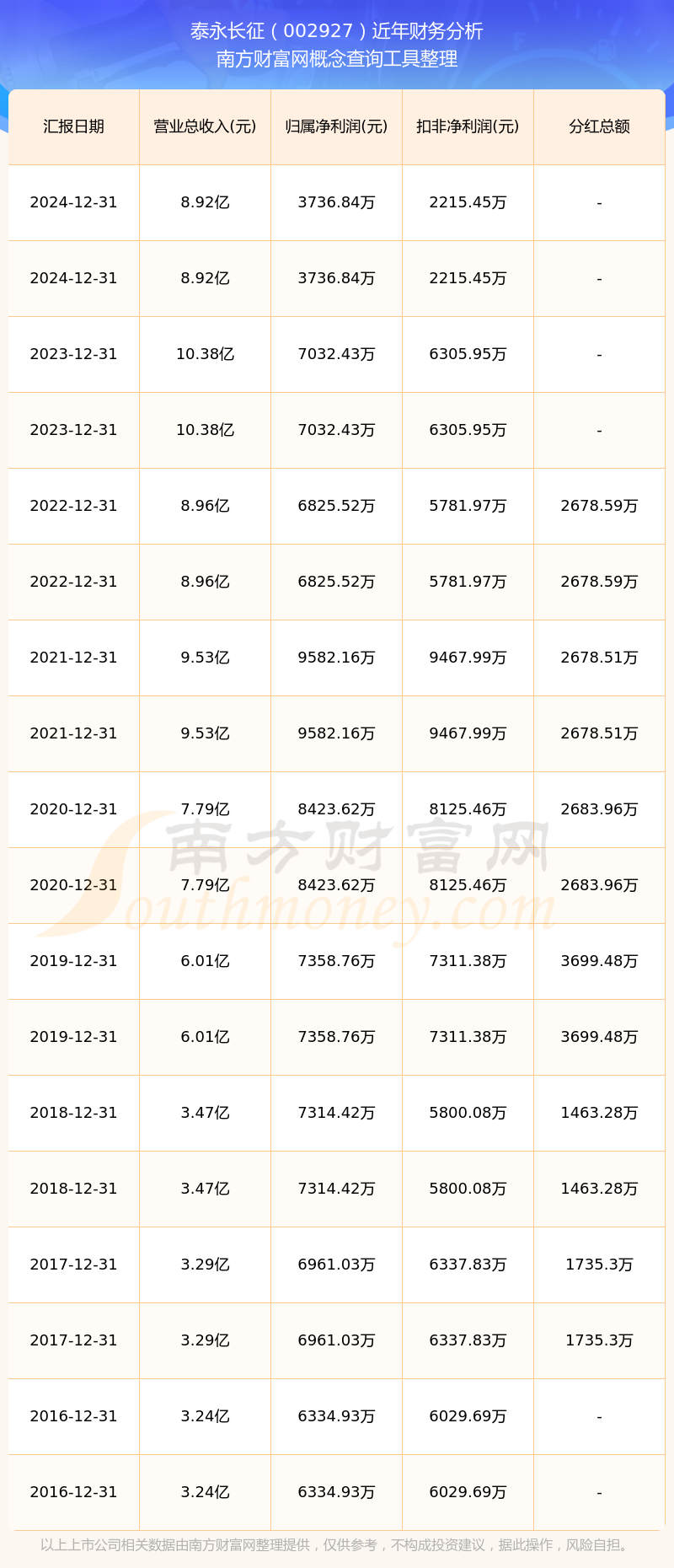 近年泰永長(zhǎng)征分紅派息情況如下表所示: