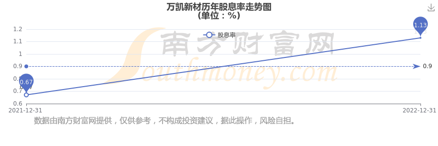 萬凱新材歷年股息率走勢(shì)如下圖: