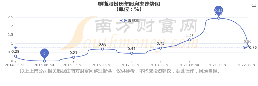鮑斯股份歷年股息率走勢(shì)如下圖: