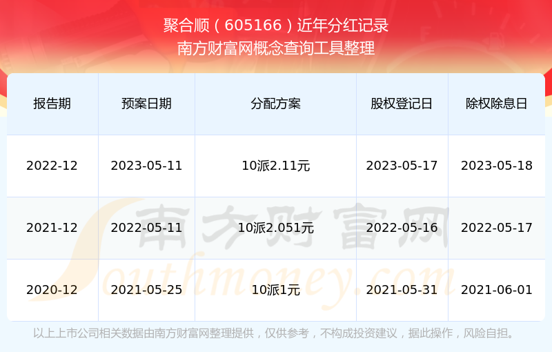 聚合順最新一次公布的分紅方案:10派2.11元。