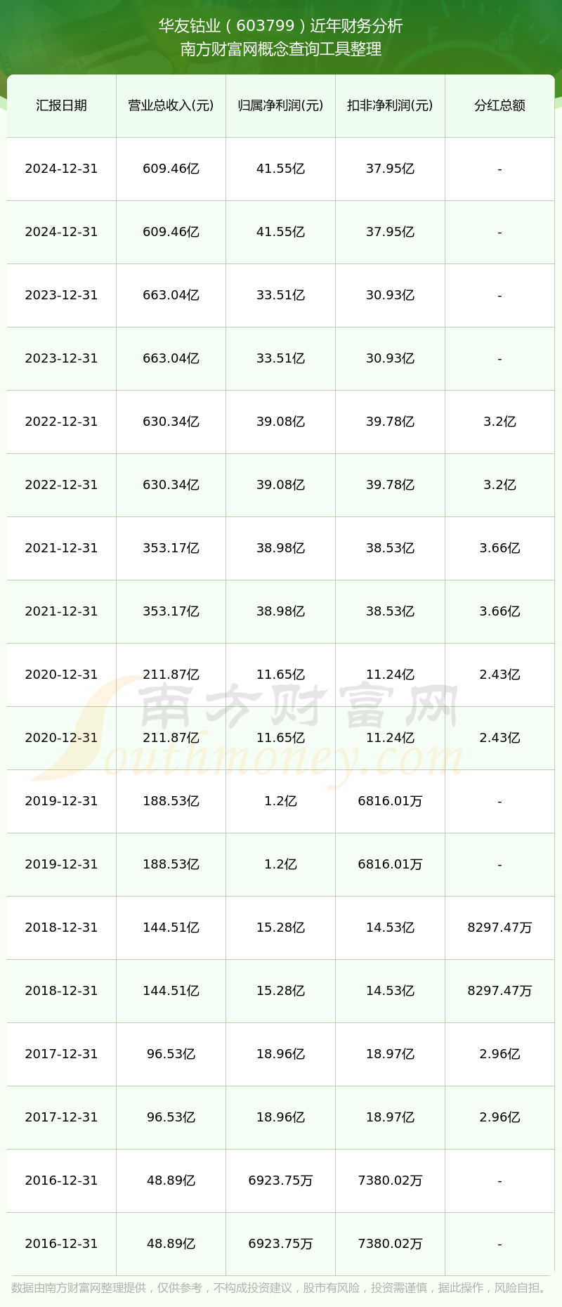 近年華友鈷業(yè)分紅派息情況如下表所示: