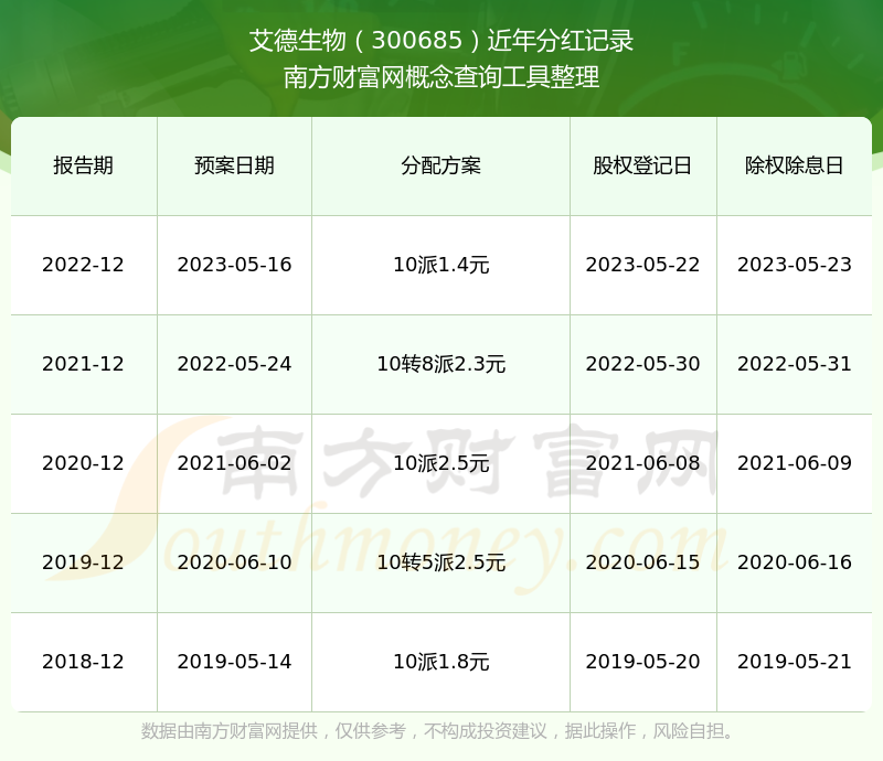 艾德生物最新一次公布的分紅方案:10派1.4元。