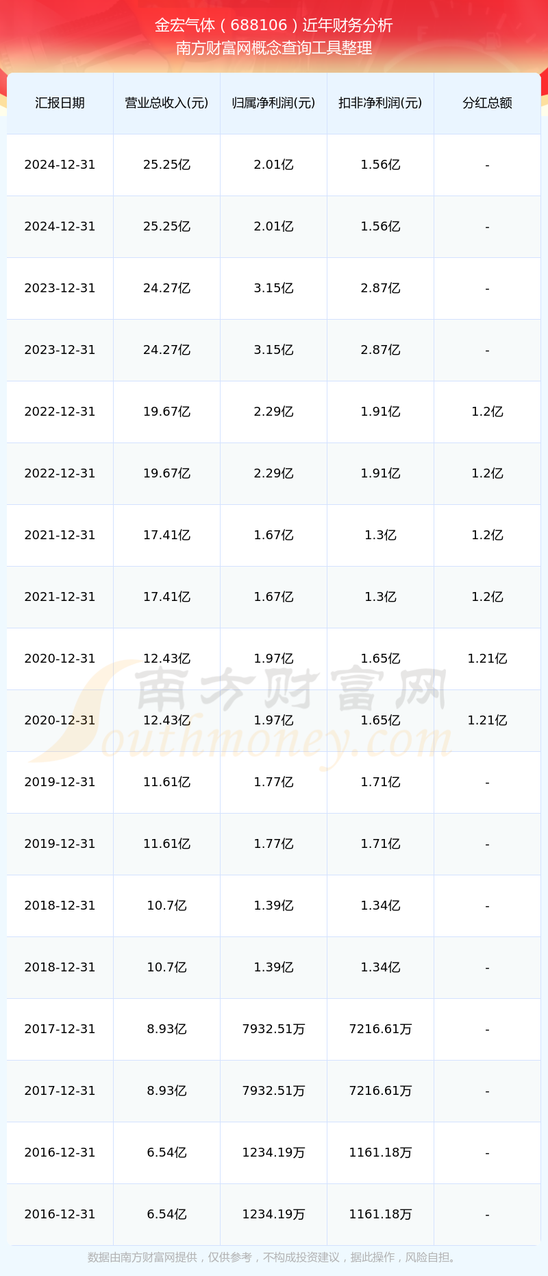 2024年金宏氣體總營收25.25億,同比增長4.03%;凈利潤2.01億,同比增長-36.12%;銷售毛利率32.15%。