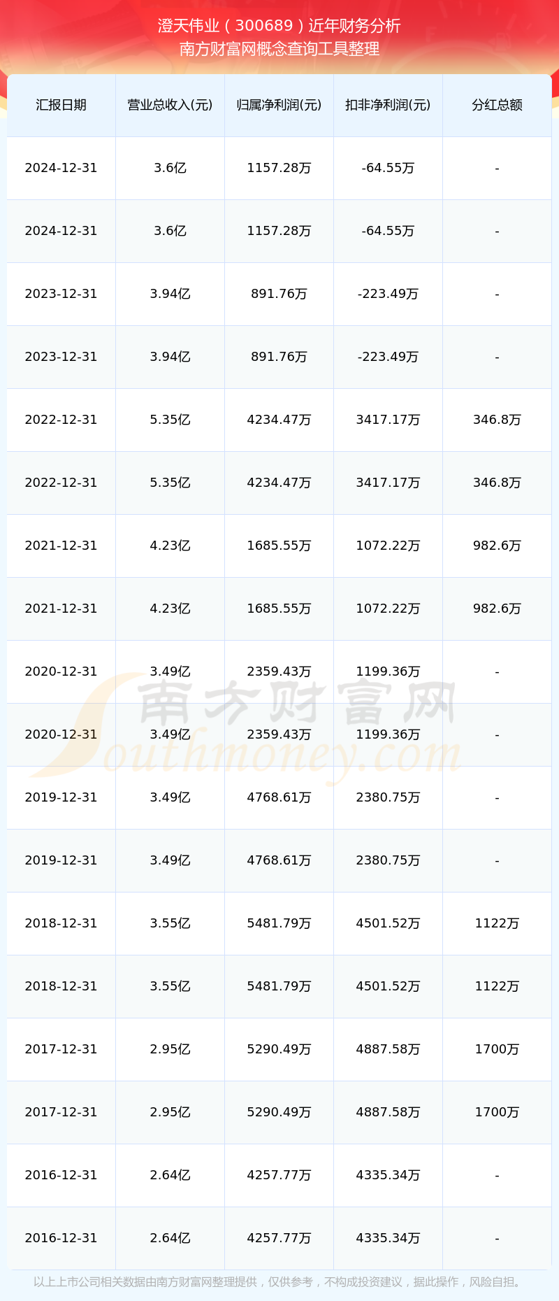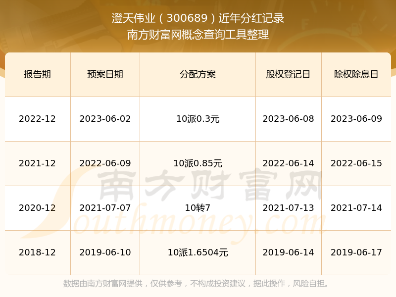 澄天偉業(yè)歷年分紅派息情況如下表所示: