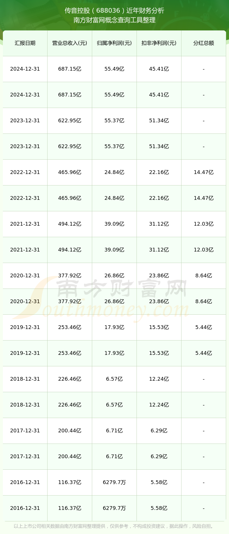 傳音控股歷年分紅派息情況如下表所示: