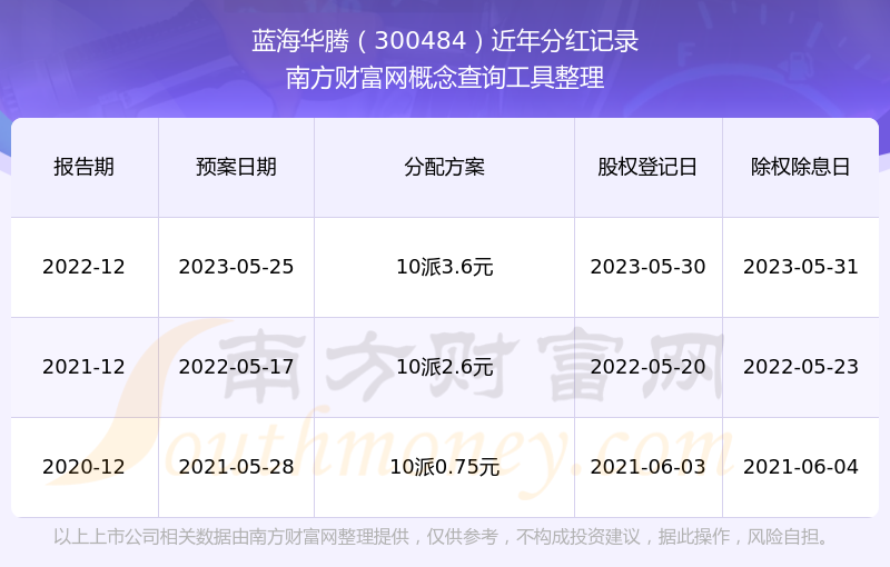 藍(lán)海華騰300484分紅時(shí)間: