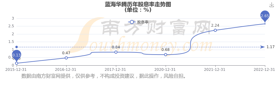 藍(lán)海華騰歷年股息率走勢(shì)如下圖: