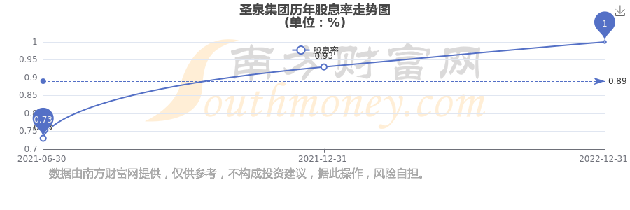 圣泉集團(tuán)歷年股息率走勢(shì)如下圖:
