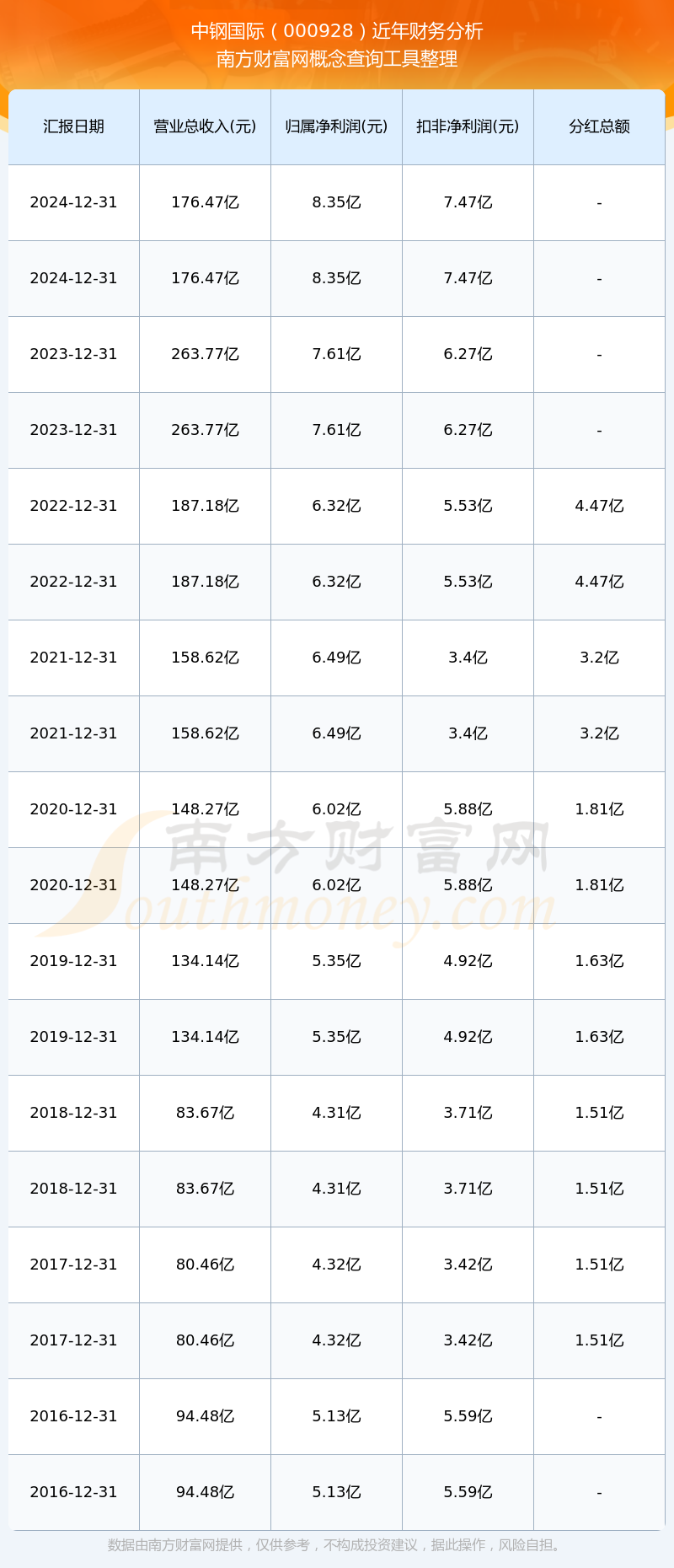 中鋼國際公司2024年實現(xiàn)營業(yè)收入176.47億元,同比增長-33.1%;凈利潤8.35億元,同比增長9.69%;毛利率14.5%。