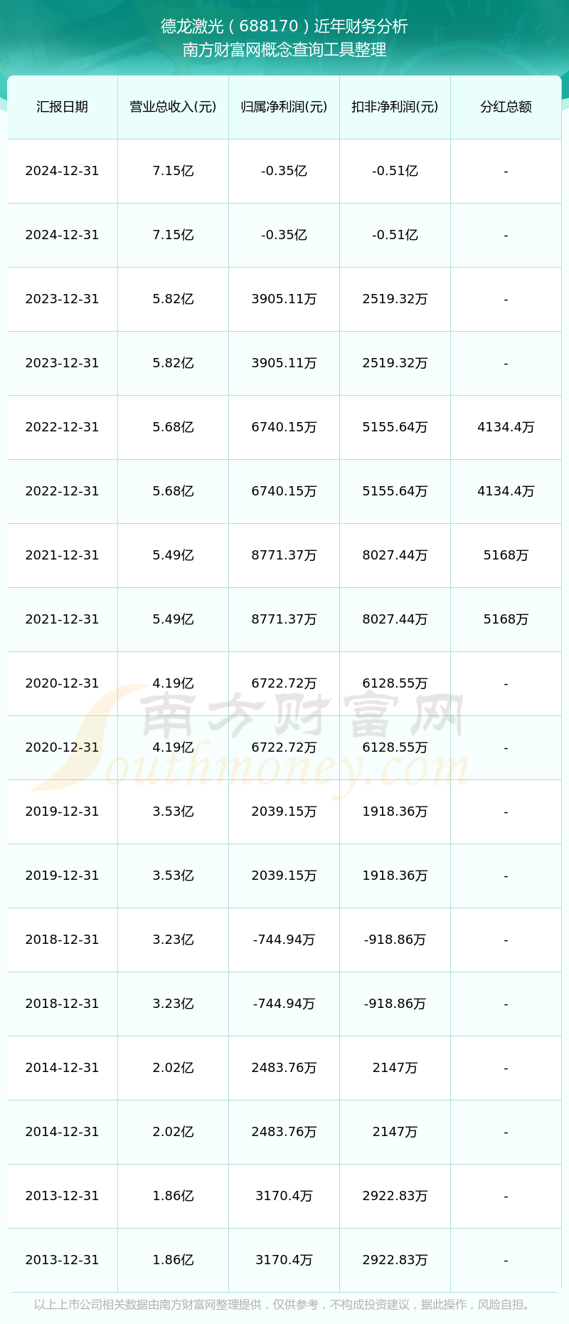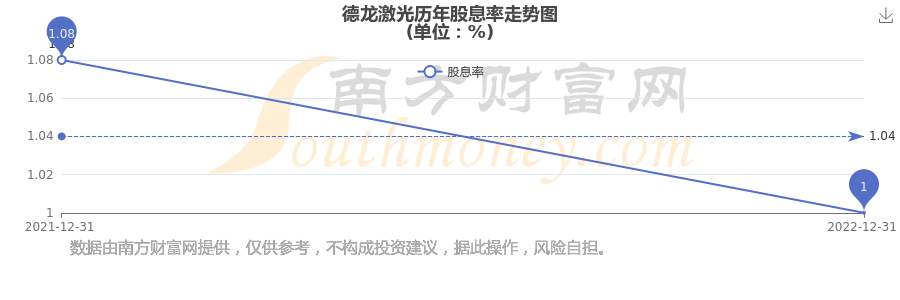 德龍激光最新一次公布的分紅方案為10派4元。本次權(quán)益分派股權(quán)登記日為2023年5月30日,除權(quán)除息日為2023年5月31日,派息日為2023年5月31日。