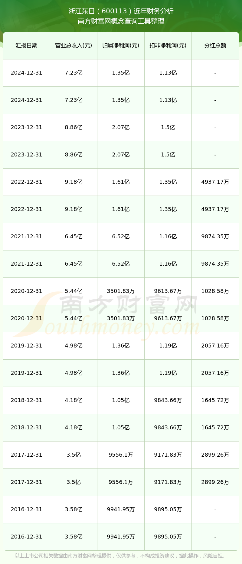 浙江東日2024年總營收7.23億,同比增長-18.44%;凈利潤1.35億,同比增長-34.94%;銷售毛利率38.76%。