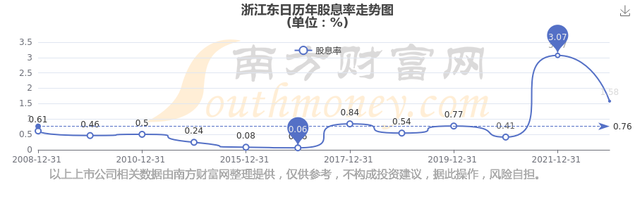 浙江東日歷年股息率走勢如下圖: